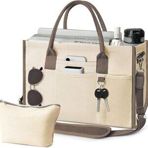 Ships quick from smoke-free, pet-free home. Open to reasonable offers. Bundle & save!"} ]}keywords: Canvas Tote Bag Women Large Capacity Multiple Pockets Travel Work, beige, brand new, spacious, versatile, makeup bag, organized, adjustable strap, durable, stylish, multi-purpose, gift-ready, easy to clean, lightweight, well-made, practical. Also has extra info about the item. Please incorporate these keywords naturally into the description. Keep it friendly and conversational. Provide a friendly, approachable tone that makes the buyer feel like they’re chatting with