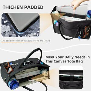 Canvas Tote Bag Women Large Capacity Multiple Pockets Travel Work — Versatile and spacious.