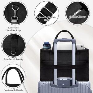 Features: This oversized tote measures 15 x 6.3 x 10.5 inches, with a handy 9.71 x 6.7-inch makeup bag included to keep your cosmetics organized. It has four easy-reach front pockets for your phone and glasses, a main compartment with three pockets perfect for an iPad, books, or water bottles, plus a back zipper pocket for wallet and keys. The adjustable and detachable shoulder strap means it can easily switch from tote to crossbody or shoulder bag, fitting your style and needs.
