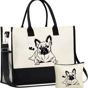 Features: Spacious tote with a top zipper to keep your essentials secure. Inside compartment features a zippered pocket plus two side pockets, perfect for your keys, wallet, water bottle, or umbrella. Comes with a cute makeup pouch and four removable ribbons to switch up your look.