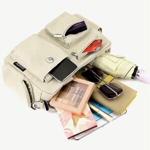 Features: Spacious canvas tote with a sleek, customizable look. It has 6 exterior pockets for quick access to your phone, keys, and other small items. The main compartment comfortably fits an iPad, books, or your daily must-haves. The adjustable and detachable shoulder strap lets you switch between a shoulder bag, crossbody, or handbag for versatile wear.
