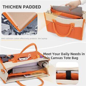 *【High-Quality Material】: This work tote bag is made of thickened canvas with exquisite craftsmanship. It is lightweight yet tough and wear-resistant, easily withstood daily scratches, friction and other wear tests. It is easy to clean and maintain, and can be used for a long time. Thick canvas fabric and perfect stitching keep it in great shape