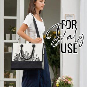 Features: Spacious tote with a secure top zipper and internal zippered pocket, perfect for carrying a laptop, iPad, and essentials. Includes an extra makeup pouch for cosmetics or skincare, and 17 stylish ribbons to personalize your look. Reinforced seams and a PE bottom pad ensure durability and shape.
