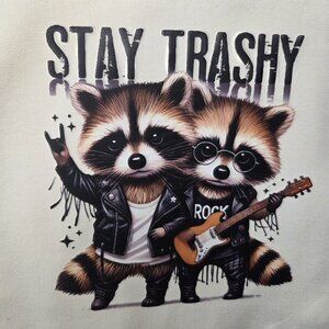 Canvas Tote Bag with Jewelry "Stay Trashy" Racoons
