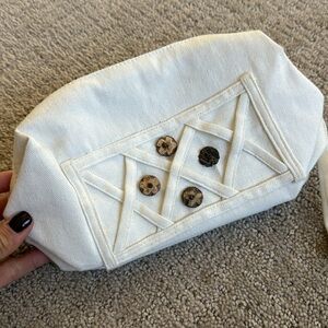 This elegant white tote bag features a stylish design with a matching pouch. Perfect for any occasion, it combines functionality with a chic look.