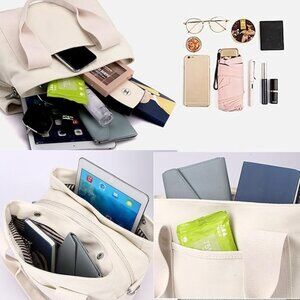 Features: Crafted from high-quality cotton canvas, this lightweight tote offers plenty of room with its 8.26 x 5.9 x 10.63 inch interior. It has a roomy main compartment with a zipper, plus handy side pockets, an interior zipper pocket, and a front button pocket — perfect for keeping your essentials organized. Comfortable double handles and a removable shoulder strap make it easy to carry whether you're heading to work, shopping, or a weekend getaway.