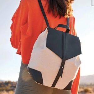 New Deux Lux canvas & vegan leather demi backpack. Canvas & PU Post Closure Adjustable Back Straps