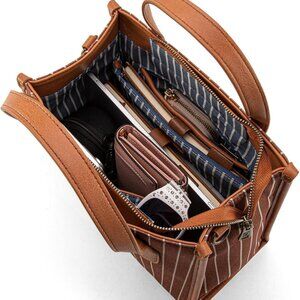 Features: This structured tote measures 15 x 5 x 12 inches and holds your essentials with ease. It features a chic vertical stripe design, a removable adjustable crossbody strap, and dedicated compartments for your laptop, zippered pockets, and more. The perfect mix of fashion and function for work, travel, or errands.