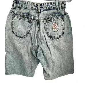 This Canvas Cut-Off denim shorts are designed for unisex adults and come with a waist size of 26 inches. The shorts feature a loose fit with a high rise greater than 10.5 inches, and an inseam of 9 inches. Made from acid wash denim, they have a classic 5-pocket styling with a zip closure. Ideal for casual summer occasions, these vintage shorts are pre-owned and do not have a tag. Keywords: Canvas, denim shorts, unisex, acid wash, vintage, loose fit, high rise, 5-pocket, summer, casual, pre-owned, no tag.