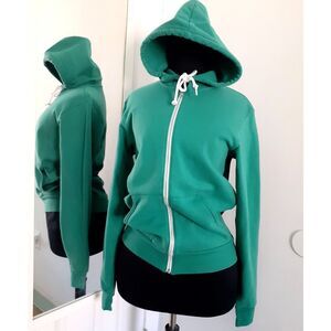 Canvas Womens Solid Green Fleece Full Zip Drawstring Sweatshirt Hoodie XS