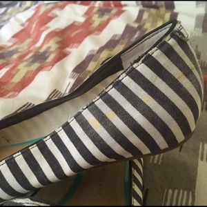 Adorable canvas pointed toe shoes. Only worn a couple times, however there are a few scuff marks including a mark on the inside of the shoe and none of the marks can be seen while wearing them!