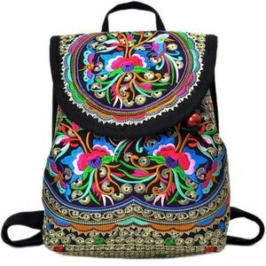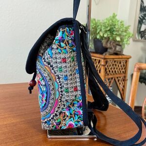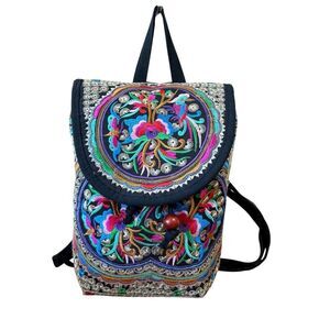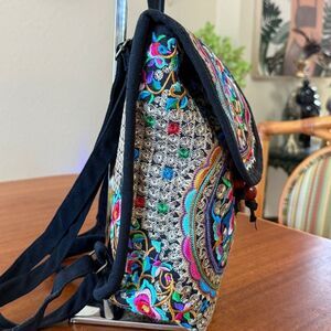 Canvas Multicolor Spanish Style Embroidered Backpack with Floral Embroidery