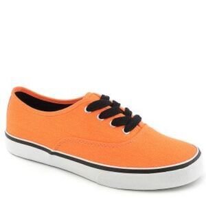Details: Orange color classic sneakers by Soda. Canvas upper, metal eyelets, rubber outsole and cushioned insole for comfort. Pair these sneakers with jeans and a cool graphic tee.