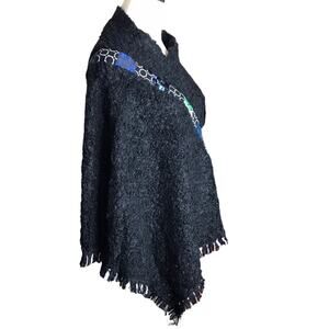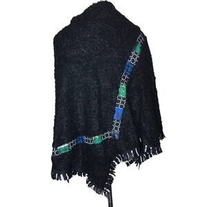 Canvasbacks Vintage Fringed Boucle Poncho-Size M/L-Silk, Cashmere,& Wool Blend