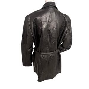 Canyon Creek Vintage Black Leather Belted Button-Up Women's Coat Jacket Patch XL