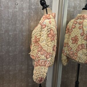 This elegant women's jacket features a unique textured design in cream and pink. Perfect for adding a touch of sophistication to any outfit. New