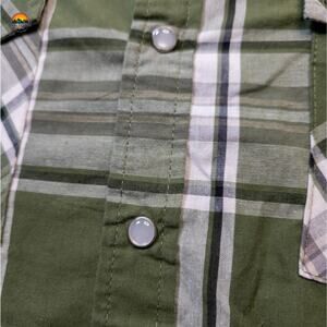 Keywords: Canyon Guide Outfitters, button-up shirt, green, plaid, women's, long sleeve, collared, pockets, casual, outdoor, versatile, SKU: 1062