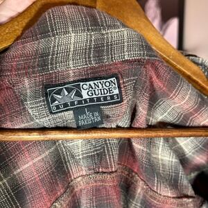 Keywords: plaid flannel shirt, mens flannel shirt, casual button down shirt, Canyon Guide Outfitters, long sleeve shirt, red gray plaid, menswear, outdoor shirt, lumberjack shirt, rustic style, vintage flannel, comfortable shirt, layered shirt, work shirt