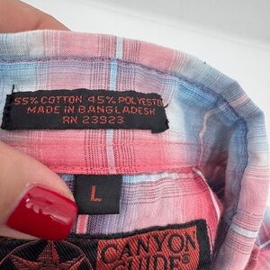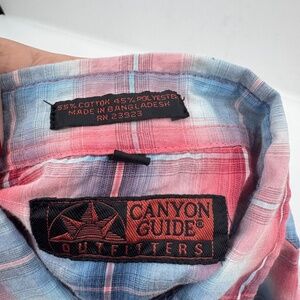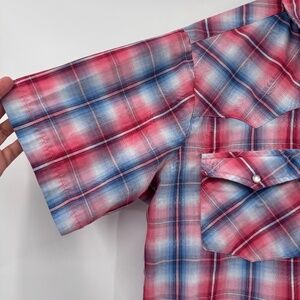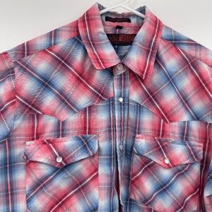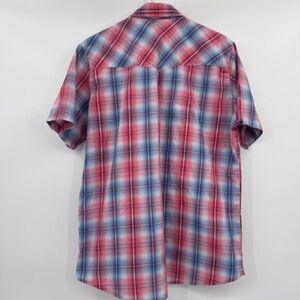 Style: Canyon Guide Shirt Men Large Red Blue Plaid Snap Button Up Short Sleeves Western