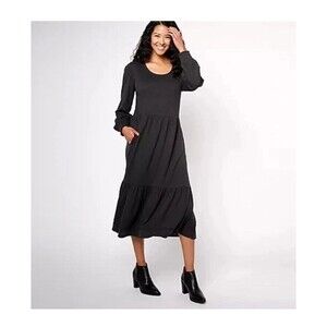 Canyon Retreat Dress Womens 1X Washed Black Easy Midi Boot Dress New