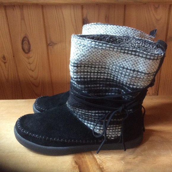 Canyon River Blues Black Suede Leather Upper Sweater Mid Calf Boot Size 6