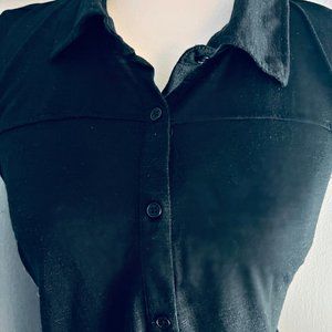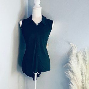 Canyon River Blues Cotton Stretch Button Down Open Back Sleeveless Black Top NWT