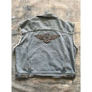 Canyon River Blues Distressed Denim Harley Davidson Patch Vest Men's Large