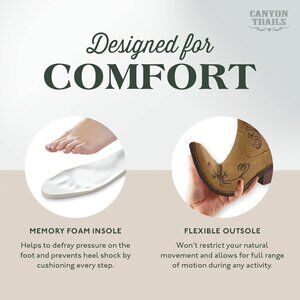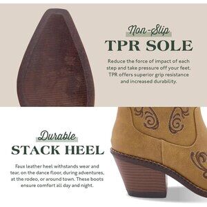 Comfortable Womens Cowboy Boots: Featuring premium memory foam insoles, these cowgirl womens boots provide all-day comfort for women, whether they're walking, dancing, or riding. The soft breathable lining & inner zipper ensures a cozy fit with every step.
