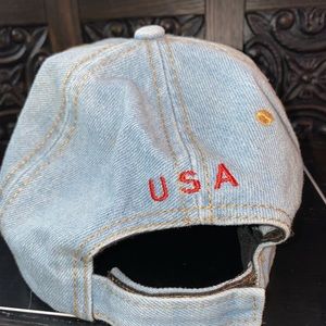 David & Young Women's Distressed Mom Life Embroidered Baseball Cap. Denim USA and American flag.