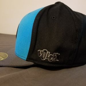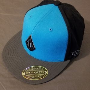 Turquoise blue and black volcom premium fitted cap with flexfit technology. Size 6 7/8 - 7 1/4.