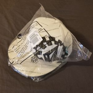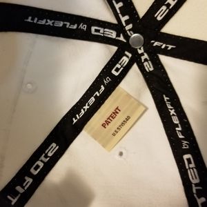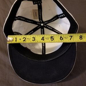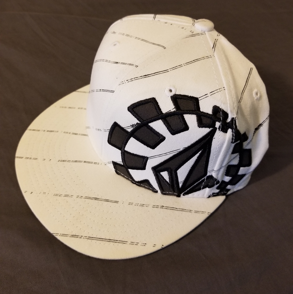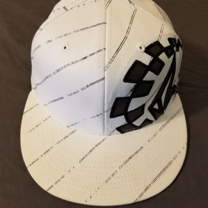 White and black volcom premium fitted cap with flexfit technology. Size 6 7/8 - 7 1/4.
