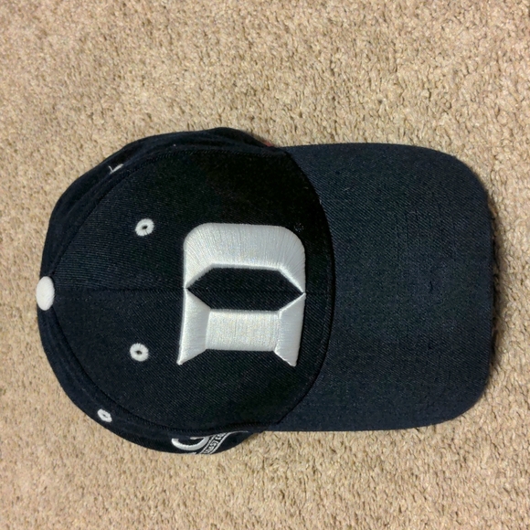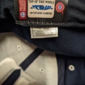 New, dark navy blue with white embroidered details, velcro closure is adjustable for a perfect fit. Firm curved bill. Pet free, smoke free home.