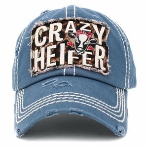De-stress C.C light blue color cap, super cute that says, "Crazy Helfer." Cap has velcro adjustable strap. Perfect for summer or hair up, if on the run.