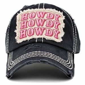 De-stress C.C gray cap, super cute that says, "HOWDY, HOWDY, HOWDY." Cap has velcro adjustable strap. Perfect for summer or hair up, if on the run.