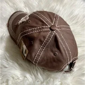 Brand new distressed with logo cap. It is brownish/Tan and very comfortable and adjustable to any size head. Reasonable offer accepted.
