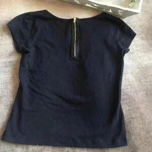Cap Sleeve Black Scoop Neck T-Shirt w Gold Zipper