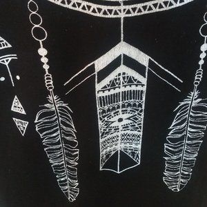 Womens L cap sleeve stretch top black w/white embellished dreamcatcher WS134