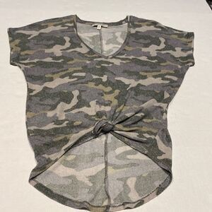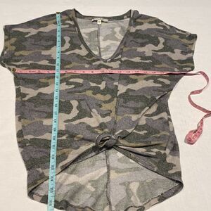 Cap sleeve v neck camouflage lite weight woven top by Express size Small