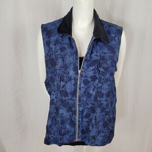 Capacity Blue Denim Floral Print Skirt and Vest Set Size 1X