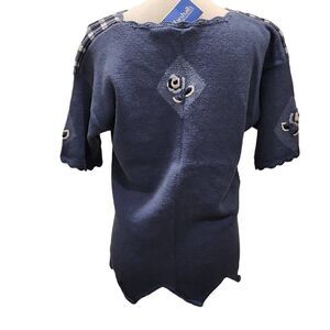 Capacity Women's Blue Scalloped Short Sleeve Sweater Petite Large Grande NWT Knit