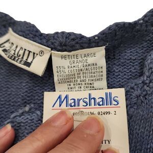 Capacity Women's Blue Scalloped Short Sleeve Sweater Petite Large Grande NWT