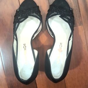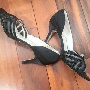 Caparros Black Satin Open Toe Heels Sandals Size 8.5