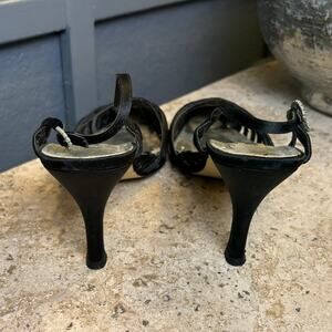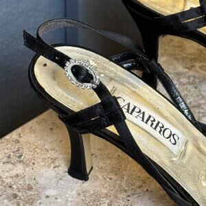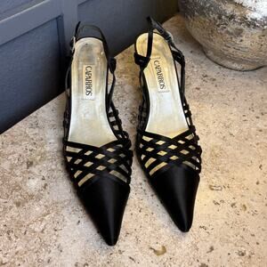 Caparros Black Satin Pointed Toe Slingback Formal Wedding Evening Heel Sz 9.5