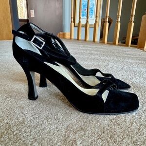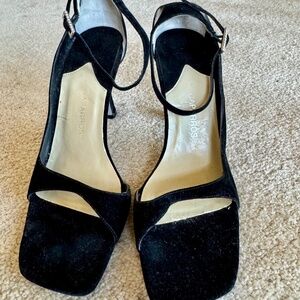 Caparros Black Sq Open Toe 3 in Heel W/Crystal Buckle Sz 9M