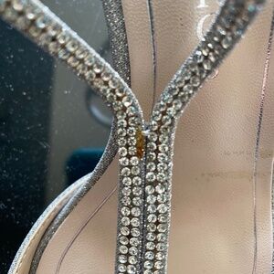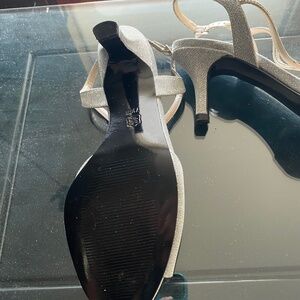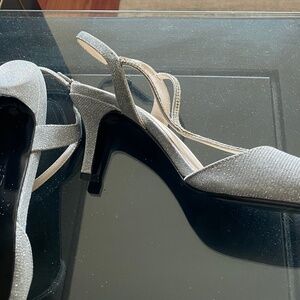 Caparros Silver dressy shoes. Size 7-1/2. Worn once. Slight glue discoloration on strap. 3" heel. In excellent condition. Comes from a pet-free; non-smoking home.