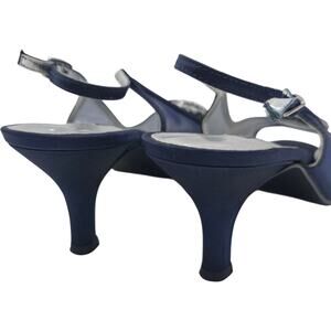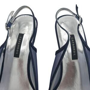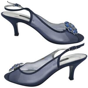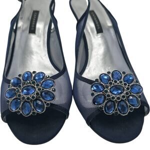 Caparros Goddess Slingback Heels Navy Blue Mesh Jeweled Peep Toe – Size 9W