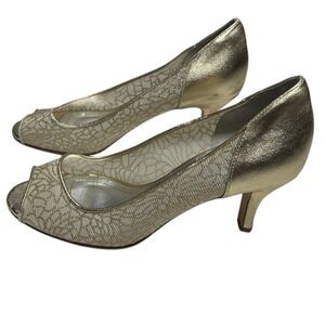 Caparros Gold Sparkly Lace Peep Toe Heels Size 8.5