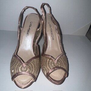 Caparros Lace Open Toe Heels. Leather soles with minor marks. Smoke-free home