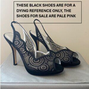 Great condition. Gently worn. Light pink lace with expandable back strap. Heel is approximately 4 1/2 inches off ground. These can easily be dyed as you can see in the picture
