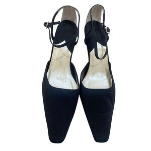 Caparros Paulette black leather sole ankle strap shoes 2.5 inch heel size 10
